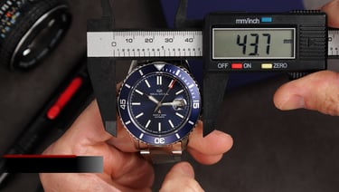 Looking at dimensions, this Ocean Series Diver measures 43.7 millimeters across, 12.7 millimeters thick, and about 50 millimeters lug-to-lug. Include the solid end links, and the effective wingspan jumps to around 55 millimeters, so yes make no mistake —this is a substantial diver.
