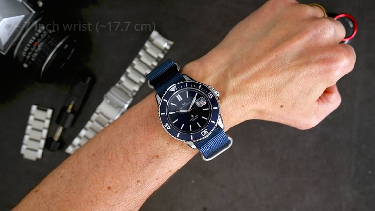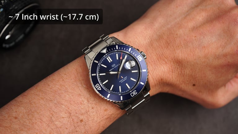 Once sized for my 7-inch wrist, this Ocean Series sits with real presence. The case hugs the wrist thanks to those curved lugs, and the overall balance feels spot-on. The reduced weight—173 grams sized—lands right in that sweet spot where you feel the quality without any fatigue.