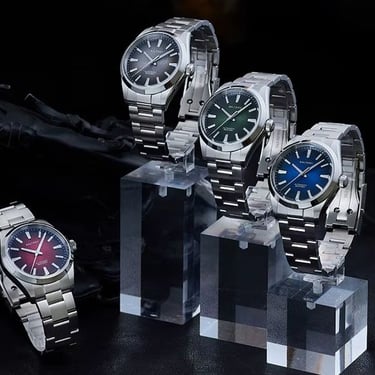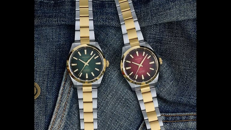 This model is offered in six different colourways in total. You’ve got four fumé, smoky dial colours, all sharing that same subtle gradient effect. And if you want something a bit more eye-catching, the red and green dials are also available in a two-tone configuration, paired with gold-tone accents.