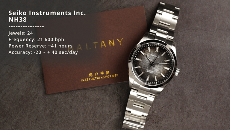 Powering this watch is the Seiko NH38 automatic—and yes, I know some of you might immediately ask: why not something more premium? Personally, I wouldn’t mind seeing a Miyota 9000-series option here. Baltany already uses those movements very well, and they’re excellent. But the reality is, that would add a solid chunk to the price—easily seventy, maybe even closer to a hundred dollars more.