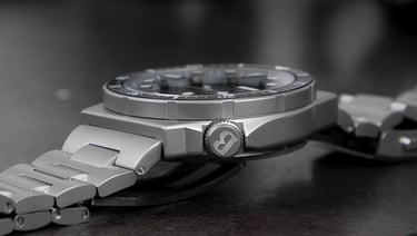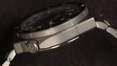 Now, we already touched on the crown placement, but it’s worth repeating — the screw-down crown sits at four o’clock, and the case is sculpted really nicely around it. It doesn’t protrude awkwardly like on some designs, yet it’s still large enough for easy engagement. The crown guards are well integrated, protective without being bulky. It’s a very deliberate and well-balanced execution.