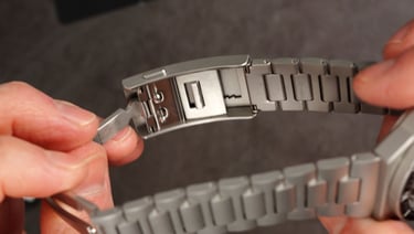 And yes — this one has an on-the-fly adjustment. It’s a robust, practical system that works exactly as it should. Smooth to operate, secure in position, and importantly, it keeps the outside of the clasp clean. There are no visible external screws or other elements disrupting the design. So, yes, nothing to complain about here.