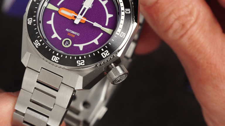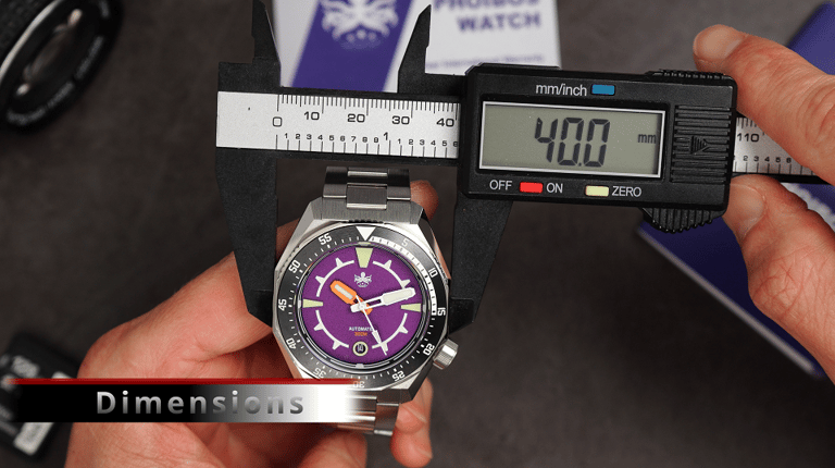 The dial, though, is where things get especially bold. It’s vibrant, textured, and full of personality — unmistakably Phoibos. The layout is highly legible, and there’s definitely no shortage of lume here either. As we’ll see shortly, the entire dial and handset light up impressively in the dark, which really drives home the true diver DNA of this piece. And It doesn’t just look the part — it’s built to be used as a genuine underwater tool, and the declared water resistance backs that up.