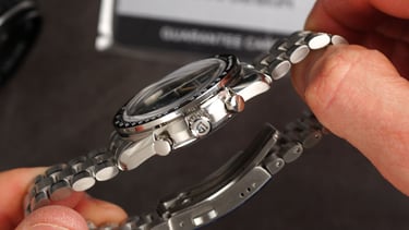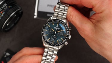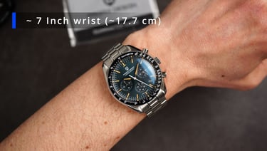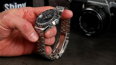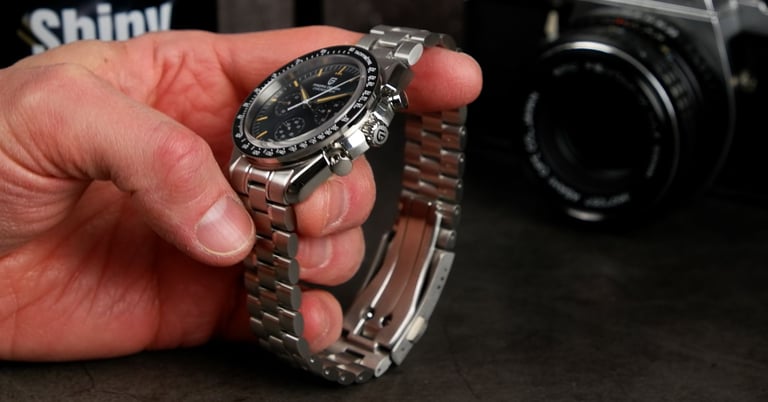 One detail I really like — and I actually had to do a double take to notice — is the date window. It’s tucked away between four and five o’clock, and it’s done really cleanly. And if you didn’t spot it straight away… that kind of proves the point. And I like that — it adds a bit of practicality without completely ruining the layout, even though, of course, the original Speedmaster doesn’t have a date.