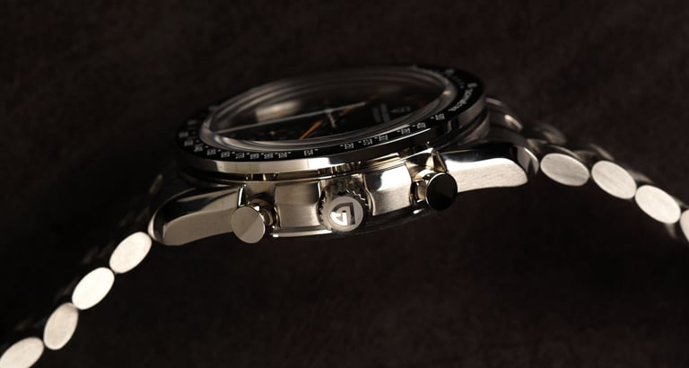 As for the case finishing — I think this is where the economies of scale starts to show. I believe it would have been more challenging to get this such a decent quality of case finishing on a smaller production runs, definitely not at the price of this chronograph.