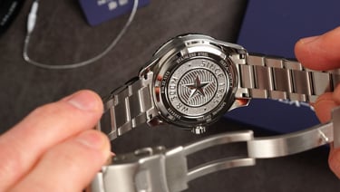 Up top, we’ve got a perfectly flat sapphire crystal, and it’s very nicely integrated into the overall design. It sits almost flush with the bezel, which not only keeps the profile clean but also gives the watch head a very cohesive, purposeful look.