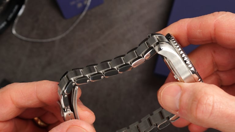 One detail I particularly like is the shaping of the links. So the end links are slightly recessed, which you might already know I’m a fan of, and the center parts of the rest of the bracelet links sit just a touch higher than the outer sections. And combined with the finishing approach — brushed center links and high-polished outer portions — it’s actually quite clever. Because in real-world use, the brushed areas tend to pick up the unavoidable scratches first, while the polished edges stay looking cleaner for longer. Honestly, I wish more brands approached bracelet finishing this way.