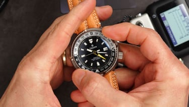And finally, because the entire case is titanium, the wearability is boosted even further. At just 81 grams on the supplied leather strap, it comes in at nearly half the weight of a comparable stainless-steel Tuna on a bracelet. So despite the numbers, and despite the bold looks, this is a surprisingly manageable piece on the wrist.