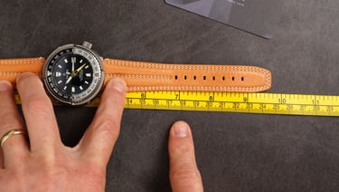 Lug width is 22 millimetres, which suits a case of this size, but THORN went a step further to help the proportions. The supplied strap flares out near the case to almost 27 millimetres, visually bridging the gap between the shroud and the strap and giving the whole front view a much more integrated transition.