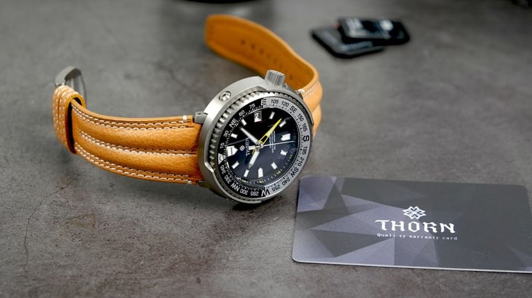 Discover the Thorn T012 titanium GMT watch featuring the reliable Seiko NH34 GMT movement. Read our in-depth review of this affordable timepiece, its stylish leather strap, and why it's a great homage to the Seiko Tuna. Perfect for watch enthusiasts and collectors!